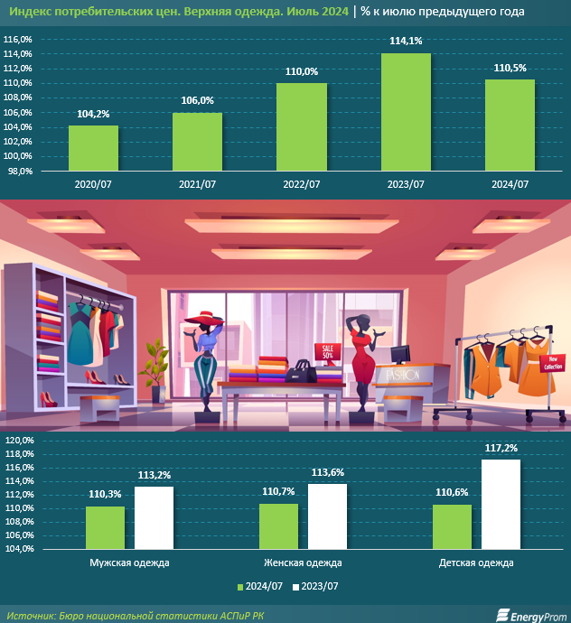 год. Детская одежда выросла в цене на 10,6%, а мужская — на 10,3%.