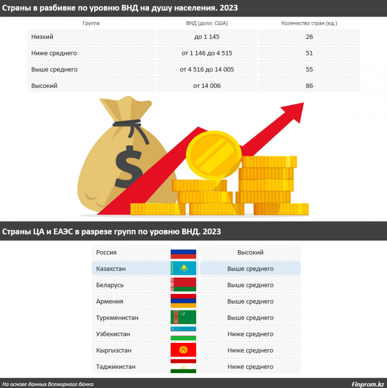 Среди государств ЦА и ЕАЭС в категорию стран с уровнем доходов выше