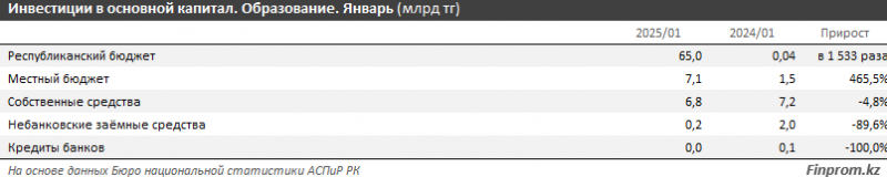 Объём инвестиций в сферу образования в Казахстане в январе текущего
