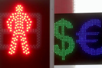 На старте торгов российская валюта укрепилась - доллар опускался на минимуме до 79,8 рубля, евро - до 85,5 рубля. Но через несколько минут ситуация кардинально изменился и доллар укрепился почти до 82 рублей, а евро подобрался к 90 рублям. Позднее доллар и евро откатились назад и, по состоянию на 10.20 мск, торговались возле 81 и 88 рублей соответственно. Потом произошел еще один отскок: курс доллара дошел до уровня 79,8 рубля, курс евро - до 86,5 рубля.