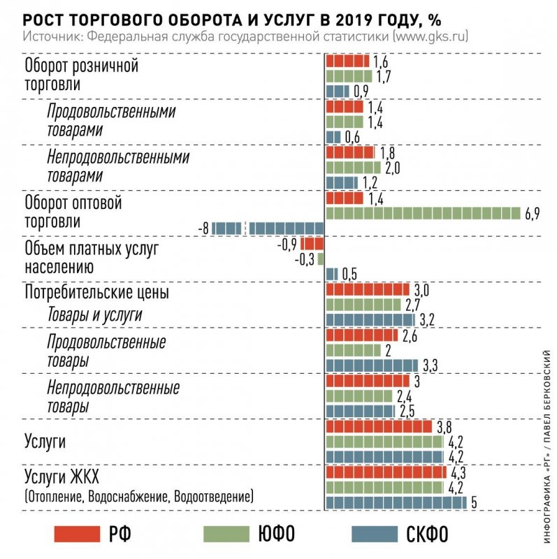 Инфографика "РГ" / Павел БерковскийСкромный рост денежных доходов жителей и заработной платы сопровождался в 2019 году совсем уж незначительным увеличением реальных доходов. Разбогатеть южанам не давало и подорожание ряда платных услуг. Если в среднем по стране реальные доходы подросли на полтора процента, то Ставрополье вообще ушло в минус на 0,6 процента. А у нижегородцев есть повод для радости - для них этот показатель составил 2,3 процента.