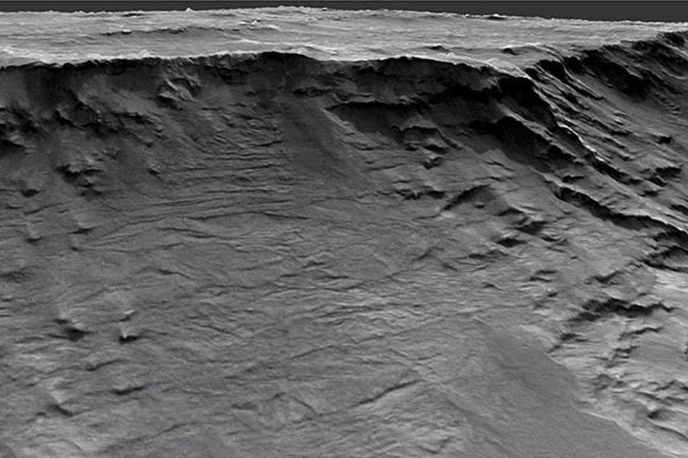 На скалах видны слоистые отложения камней, причем их ширина достигает 200 метров. Снимки оказались достаточно детальными для того, чтобы с уверенностью заявить - это осадочные породы, образованные проточной водой.