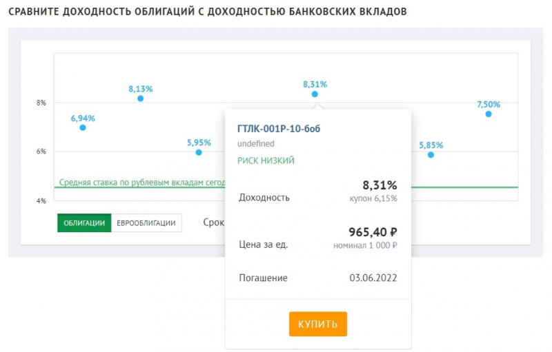 От обучения переходим к практике. Первым делом в разделе предлагается сравнить доходность облигаций и банковских вкладов.