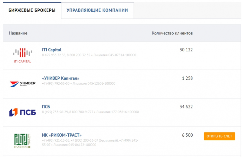 В разделе «Инвестиции» собрана необходимая информация по комиссиям и условиям обслуживания. Выбирайте вкладку «Биржевые брокеры» или «Управляющие компании» и подайте заявку на открытие счета.