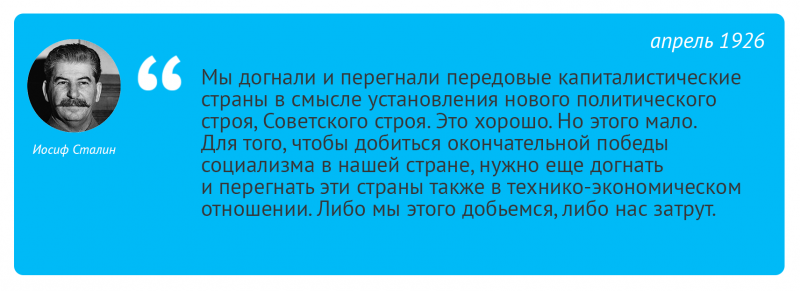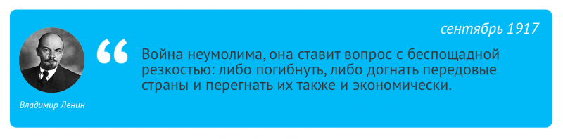 Впрочем, Владимир Путин — далеко не первый лидер страны, кто использует идею про «догнать и перегнать». Этому приему уже больше 100 лет.