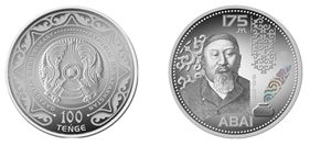 Национальный Банк Казахстана 10 августа 2020 года выпускает в обращение коллекционные монеты "ABAI. 175 JYL" из серии "Выдающиеся события и люди" из серебра номиналом 500 тенге, из сплава мельхиор номиналом 100 тенге и из сплава нейзильбер номиналом 100 тенге. Выпуск монет приурочен к 175-летию со дня рождения поэта и просветителя Абая Кунанбаева, сообщает piv-bank.ru.