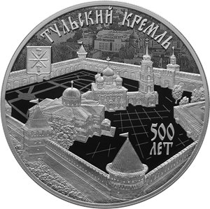 На оборотной стороне серебряной монеты расположено рельефное изображение Тульского кремля на фоне выполненной в технике лазерного матирования панорамы города; вверху слева — рельефное изображение герба города Тулы. Имеются надписи, вверху по окружности: «Тульский кремль», внизу справа в две строки: «500 лет».