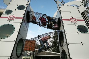 В Детском Черкизовском парке поставили необычные шары, напоминающие работу шарманок или музыкальных шкатулок. Такие же шары есть в Чапаевском парке Хорошевского района. Чтобы извлечь музыку, нужно покрутить ручки шаров.