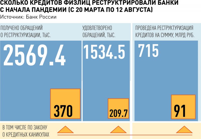 Больше не будут продлеваться "кредитные каникулы". С начала апреля и до 30 сентября банки обязаны предоставлять заемщикам отсрочку по кредитам (но не освобождение от долга, все начисленные проценты все равно придется заплатить) до полугода, если заемщик докажет, что его доходы из-за пандемии упали на треть. После 30 сентября ЦБ порекомендовал до 31 декабря банкам и микрофинансовым организациям продолжать реструктурировать кредиты гражданам, пострадавшим из-за пандемии, уже в рамках собственных программ, а также не начислять пени и штрафы по реструктурированным кредитам и займам.
