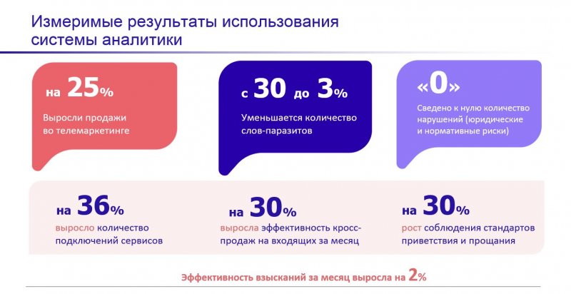 — Давайте поговорим про эффективность. Вы рассказывали, что такие системы помогают увеличить продажи, повысить уровень безопасности в компании. Хотелось бы эту тему как-то «оцифровать». Какую выгоду может принести компании использование речевой аналитики?