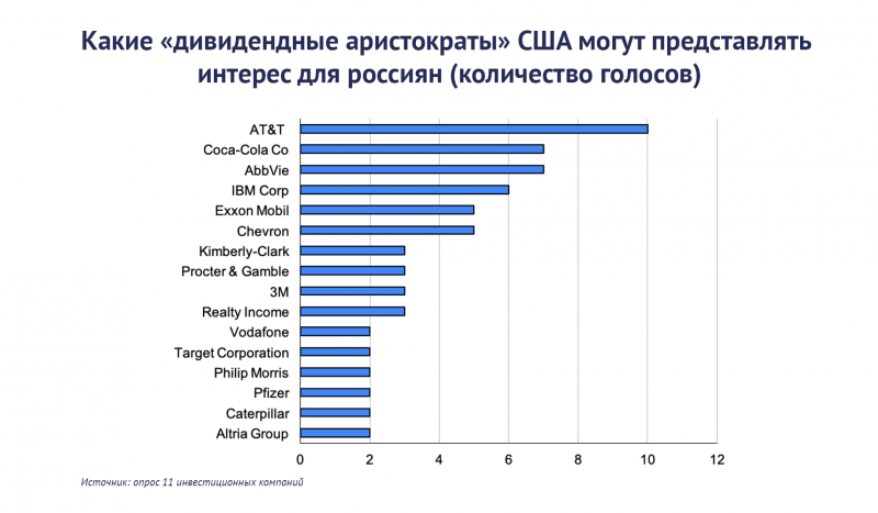 Мы опросили представителей 12 российских инвестиционных компаний о том, какие «американцы» наиболее перспективны и доступны для россиян. Представляем шорт-лист из 16 эмитентов, которые чаще всего встречались в списках наших экспертов.