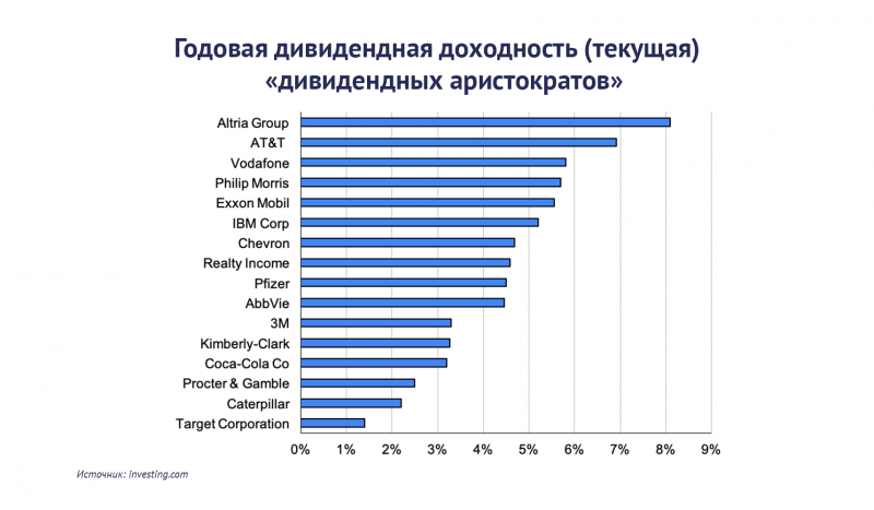 «Аристократы» США не блещут доходностью. Их главное преимущество — относительная стабильность и уверенность инвестора в регулярных выплатах. Там дивиденды принято отчислять раз в квартал, с планомерным повышением сумм.