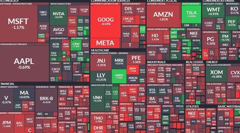 Особо заштормило рынок в четверг 9 января на фоне повышения доходности гособлигаций или, как их называют на английский лад, трежерис. К тому вышла очередная порция квартальных отчетов и корпоративных новостей. Причем не самых лучших. Например, акции Google, входящей в состав холдинга Alphabet упали на 4,5% на новостях о том, что дебют основанного на искусственном интеллекте чат-бота Bard оказался попросту провальным. Выданный им результат поискового запроса, как выяснилось, содержал фактическую ошибку. Кстати, за неделю котировки этой компании ушли вниз аж на -8,19%.