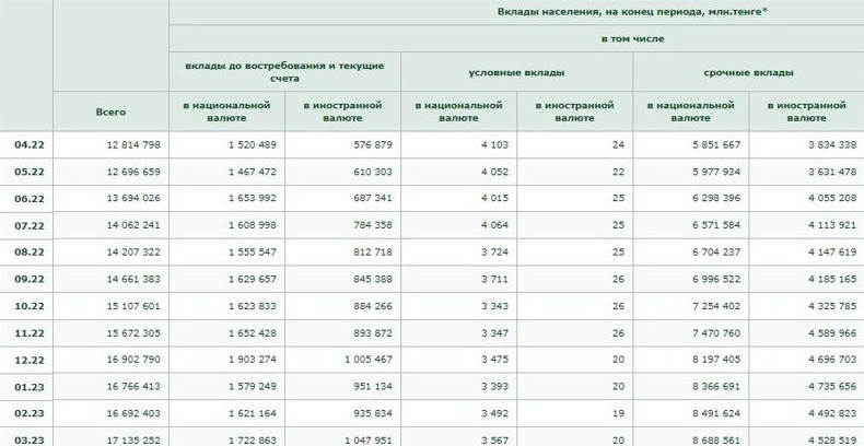 В целом, к концу прошлого года объем депозитов физических лиц в банках-участниках СГД составил более 16,9 трлн тенге, при этом срочные вклады населения превысили отметку в 12,8 трлн тенге. В марте нынешнего года этот показатель достиг уже 17,1 трлн тенге, из которых срочные вклады составили уже 13 трлн тенге.