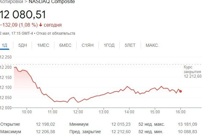 В понедельник Dow Jones упал на 0,14%, индекс S&P 500 опустился на 0,04%, индекс NASDAQ Composite подешевел на 0,11%.