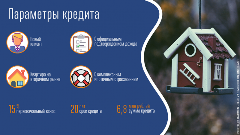 Если вы по какой-либо причине не можете воспользоваться программами госпомощи, при выборе ипотеки сравнивайте между собой предложения банков и комплексно оценивайте их выгодность. Ключевыми параметрами помимо размера ставки являются минимальный размер первоначального взноса, наличие в условиях кредитования комиссии за снижение ставки, размер надбавок за отказ от добровольных видов страхования (личное, титульное). Если есть возможность, всегда вносите больший размер первоначального взноса, чем это установлено требованиями банка. Если вы не планируете погашать кредит досрочно, а условиями кредитования предусмотрена возможность уплаты единовременной комиссии за снижение ставки, целесообразно будет согласиться на такой платеж. Ниже мы рассмотрим имеющиеся в нашем супермаркете выгодные предложения для клиентов «с улицы» на покупку квартиры на вторичном рынке стоимостью 8 млн рублей при условии оплаты первоначального взноса в размере 15%. Напомним, что у большинства кредитных организаций минимальный порог первого взноса в настоящее время составляет 20%.