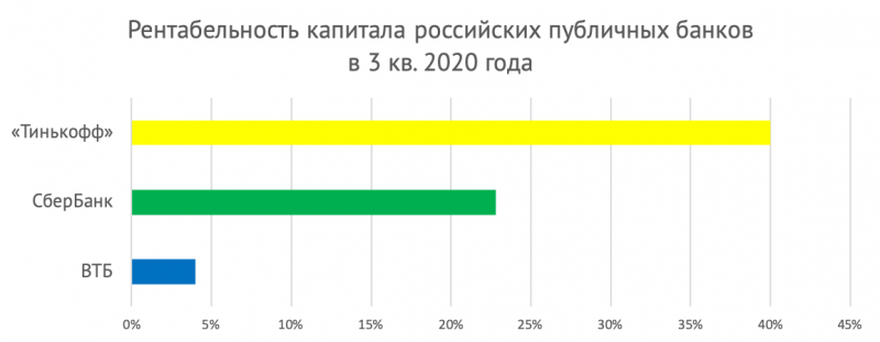 «Тинькофф», по словам Егора Дахтлера, стоит особняком. Этот банк ориентирован на кредитование физлиц, поэтому у него высокая процентная маржа, он успешно максимизирует комиссионные доходы с помощью брокерского бизнеса. В результате рентабельность капитала у него выше 35%, что является очень высоким показателем.