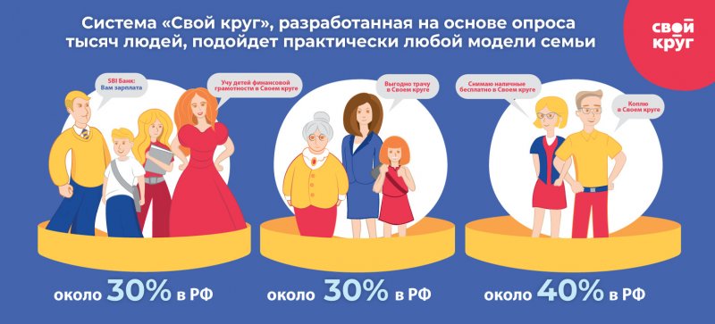 Перед тем как создать «Свой круг», SBI Банк провел масштабные исследования и опросил тысячи людей по всей России. Банк выяснил, как люди копят и тратят деньги, на чем экономят, какие возникают трудности при планировании общего бюджета, как дети расходуют свои первые накопления и т. д. Поэтому система подойдет практически любой модели семьи.