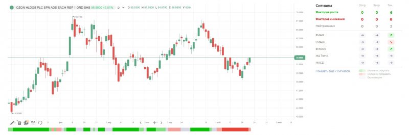 Динамика акций Ozon за три месяца