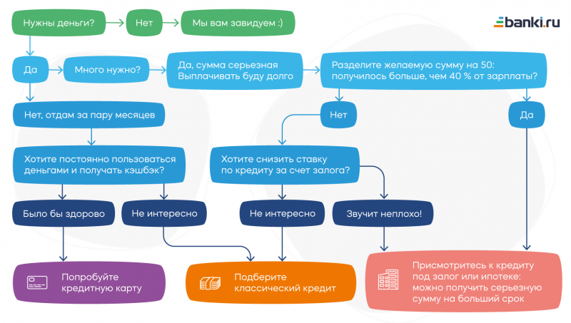 Если вы точно знаете, на что собираетесь потратить деньги банка (покупка автомобиля, оплата обучения, дорогостоящее лечение и т. д.), и вам нужна крупная сумма единовременно (возможно, даже наличными), то вам подойдет кредит.