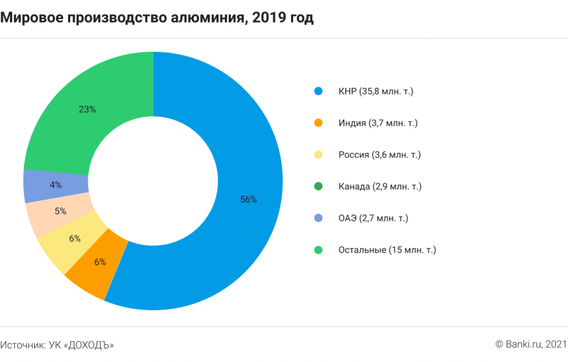 Руководитель департамента инвестиционной аналитики «Тинькофф Инвестиций» Кирилл Комаров также считает важным фактор Китая: «Помимо спроса, очень важно обратить внимание на предложение. Около половины мировых поставок алюминия приходится на Китай, где сейчас власти запрещают строить новые производства в регионах с угольной генерацией и стимулируют их перенос в регионы с высокой долей ВИЭ в энергобалансе. В совокупности изменения спроса и предложения приведут к увеличению цен на алюминий и, следовательно, росту акций поставщиков, но происходить это будет постепенно».