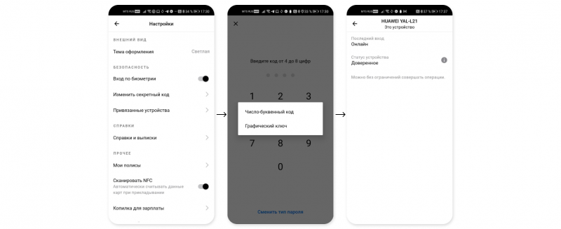 В 2021 году «красные» радикально переработали схему авторизации трат по карте, что снизило необходимость в СМС и push-уведомлениях. Теперь клиент создает на каждом устройстве отдельный секретный код, который может быть буквенным, цифровым или графическим. Более того, приложение не требует его при каждой трате в Интернете — чаще всего достаточно разблокировать приложение с помощью отпечатка пальца или лица и нажать кнопку «Подтвердить». Также в приложении можно посмотреть список устройств с доступом к интернет-банку и при необходимости выкинуть подозрительные. Вновь подключенным устройствам на некоторое время устанавливают ограничения по операциям.