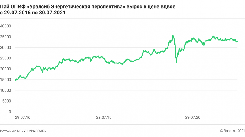 Наибольший рост «Уралсиб Энергетическая перспектива» показал в 2016 году — примерно в 2,5 раза (более 153%), рассказали в управляющей компании.